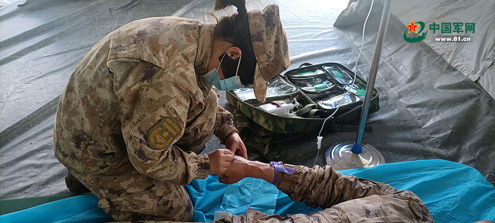 暗光输液考核,需要用黑布蒙上眼睛,模拟在夜间行驶的救护车中寻找伤员血管并准确穿刺,是护理中难度最大的课目,也最能在各种条件下考验护士基本功。多年的练习,魏攀把这项技术练得很纯熟,但今年的考核时,她还是有些紧张。“以往的压力更多是为了考个好成绩,但在这里考核,心里难免想着万一这针扎不好,在战时很可能影响到受伤官兵的及时救治。”