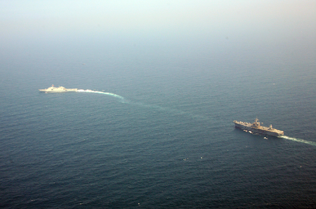 双方舰艇进行编队运动操演。 曾行贱 摄