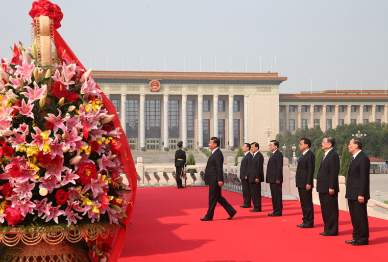 9月30日上午,党和国家领导人习近平、李克强、张德江、俞正声、刘云山、王岐山、张高丽等来到北京天安门广场,出席烈士纪念日向人民英雄敬献花篮仪式。新华社记者 姚大伟 摄