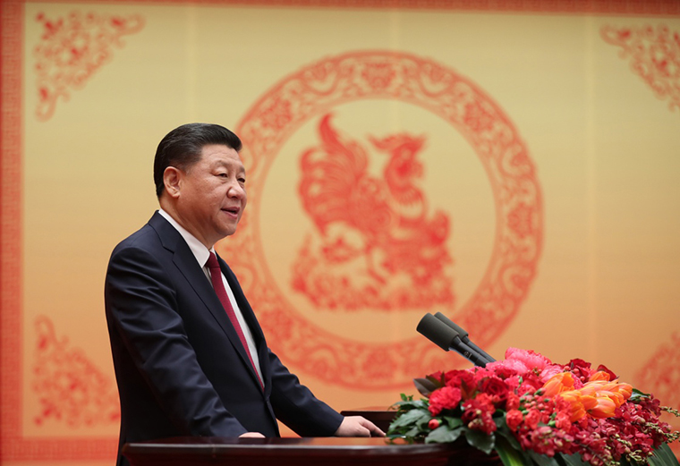 1月26日,中共中央、国务院在北京人民大会堂举行2017年春节团拜会。中共中央总书记、国家主席、中央军委主席习近平发表重要讲话。 新华社记者 鞠鹏摄