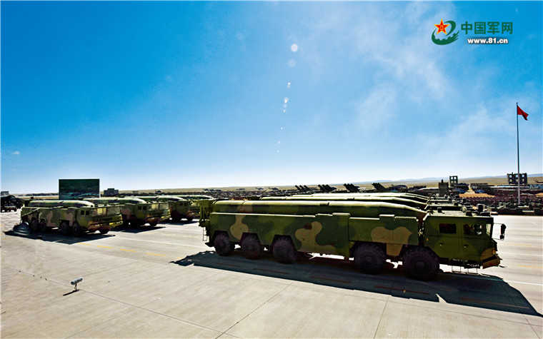 常规导弹第二方队受阅的东风-16改常规导弹,命中精度高、毁伤能力大、反应速度快,能够对敌要害目标实施精确打击。