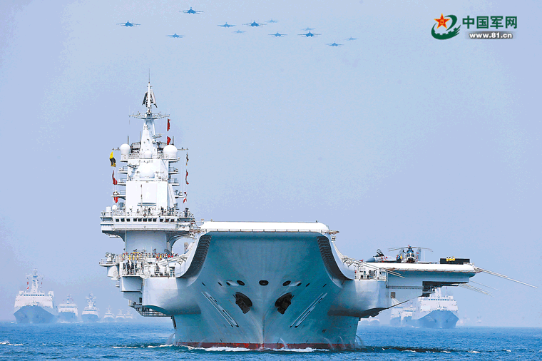 4月12日上午,中央军委在南海海域隆重举行海上阅兵。这是辽宁舰航母编队精彩亮相。解放军报记者 张 雷摄