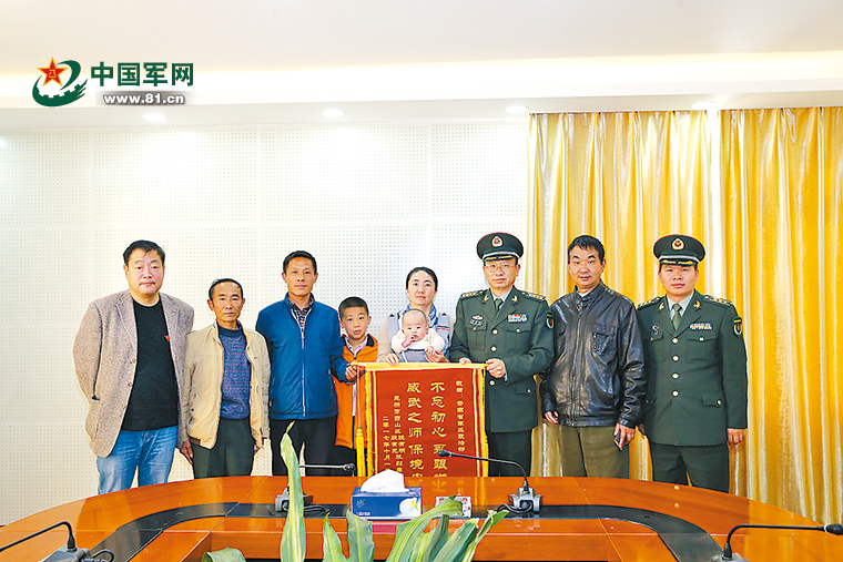 临别之际,张凤夫妇为省军区送上“威武之师保境安民,不忘初心永跟党走”锦旗,接过锦旗,省军区政治工作局副主任张继乾感慨地说,烈士后代来到军营追忆英雄故事,对我们而言也是一堂生动的教育课,必将激励广大官兵在强军兴军新征程上铿锵前进。