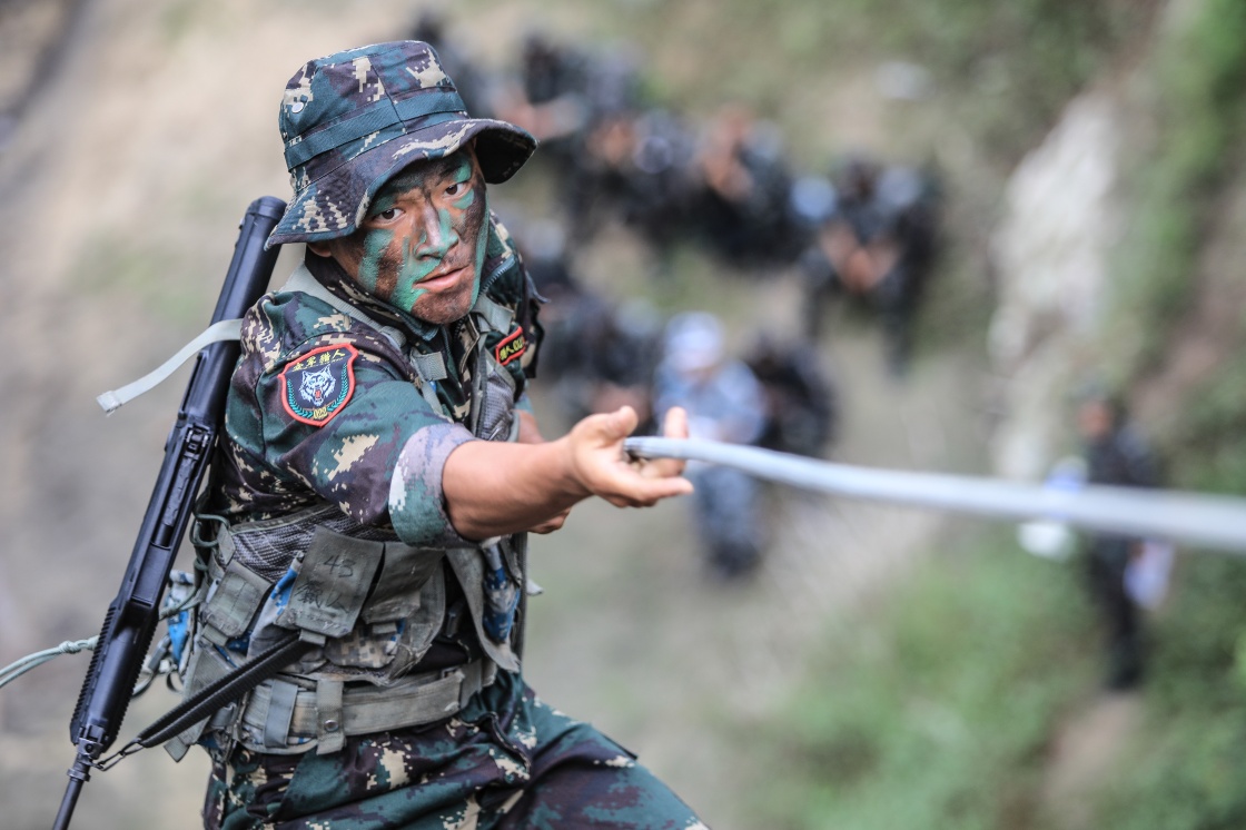 这是6月中旬空军“猎人”集训队的一次野外生存和多课目极限训练。在鄂北大山深处进行的60个小时集训,对空军“猎人”的超强度体能、超难度技能、超极限意志做出考验和锤炼。