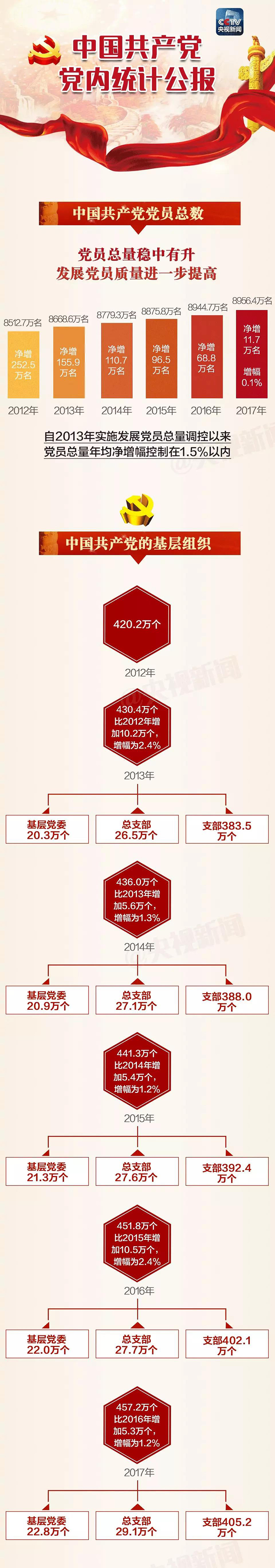 跟随一张图,一起读懂2017年中国共产党党内统计公报↓↓(注:本公报部分合计数或相对数由于单位取舍不同而产生的计算误差均未作机械调整。)