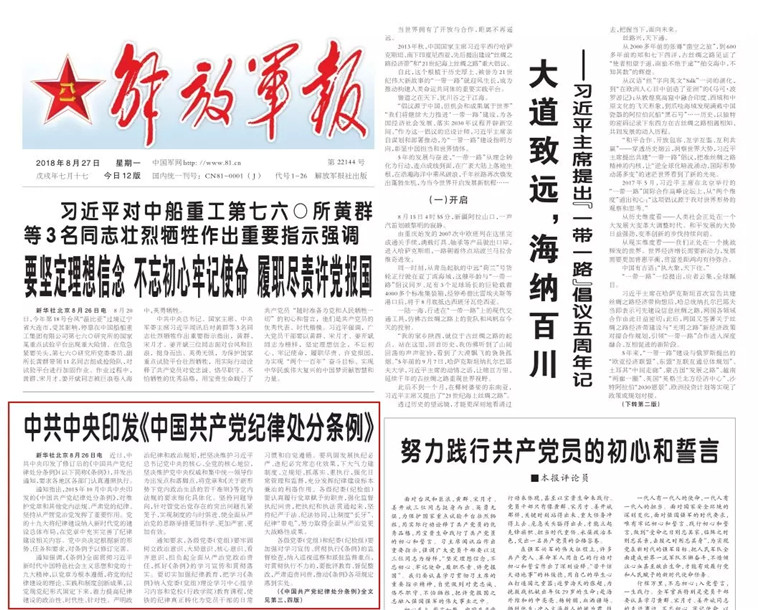 近日,中共中央印发了修订后的《中国共产党纪律处分条例》,并从今年10月1日起施行。