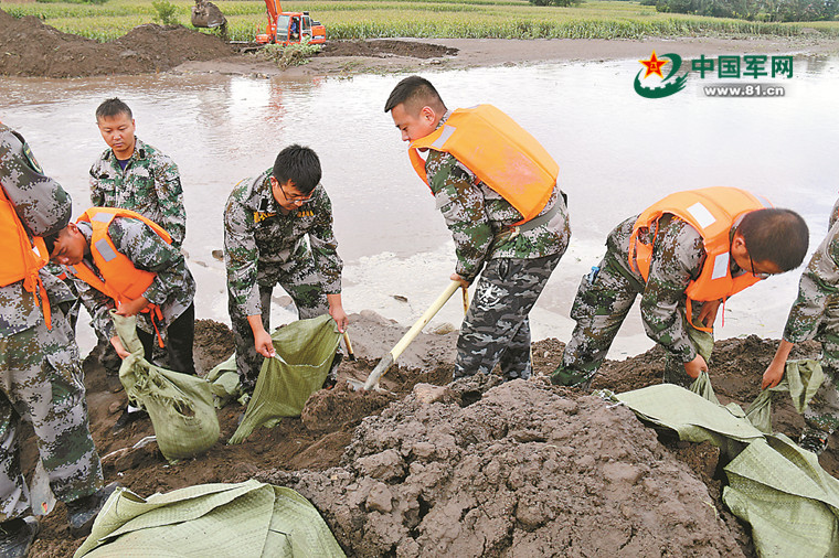 截至当日16时,在应征青年和民兵应急分队的相互配合下,成功填堵决口1个,加固河堤500余米,搬运沙袋2000余包,抢运转移物资5吨,经过反复巡查,确保完全排除险情后,应征青年分队才整装返回。