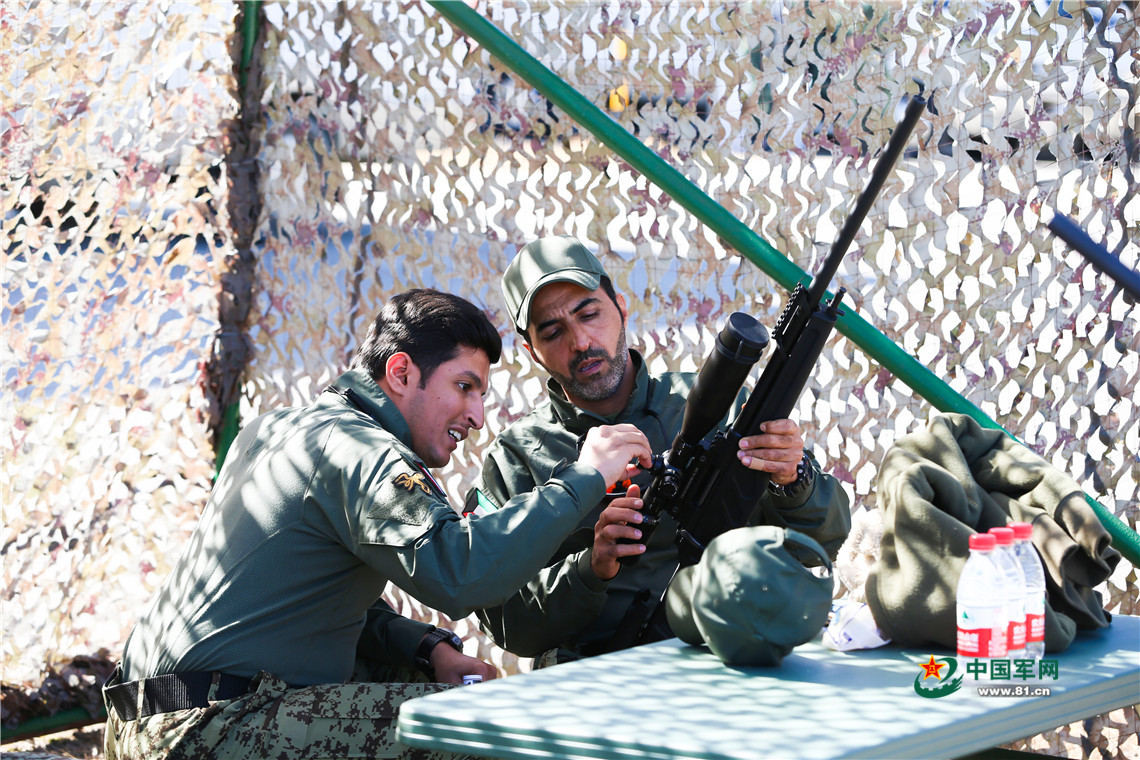 比赛开始前,外方参赛队员正在调整枪支。安晓惠 摄