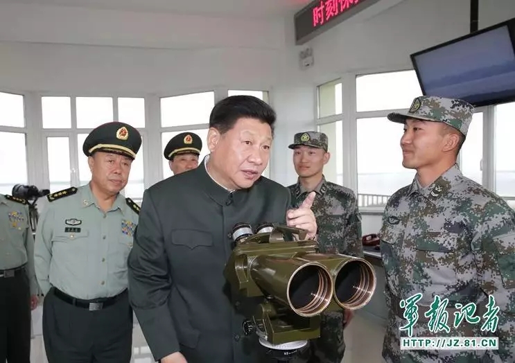 2016年5月24日,习近平登上驻黑瞎子岛边防某团10连东极哨所,了解官兵执勤情况。解放军报记者 冯凯旋 摄