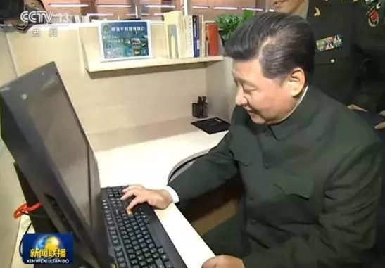 2015年12月25日16时13分,习主席在解放军报社敲击键盘发出微博,向全军官兵祝贺新年。视频截图