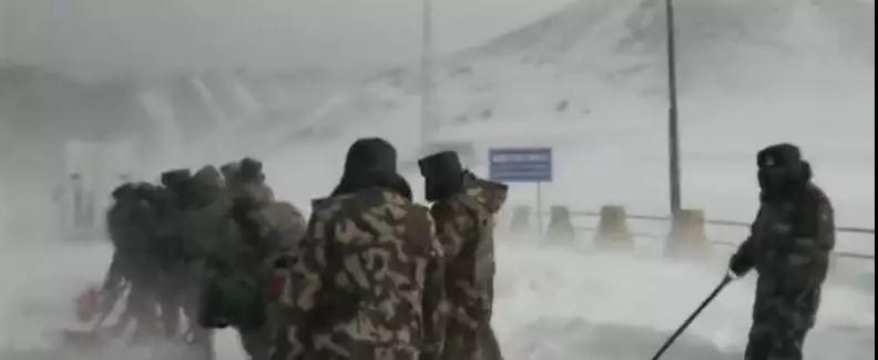 17日晚上7点,风雪越来越大,能见度不足5米。零下20摄氏度的风似刀剑般锋利,而风雪中的战士们无人退缩,在高寒缺氧和低温环境下,与风雪战斗了近两个小时。当晚8点,道路终于被抢通。