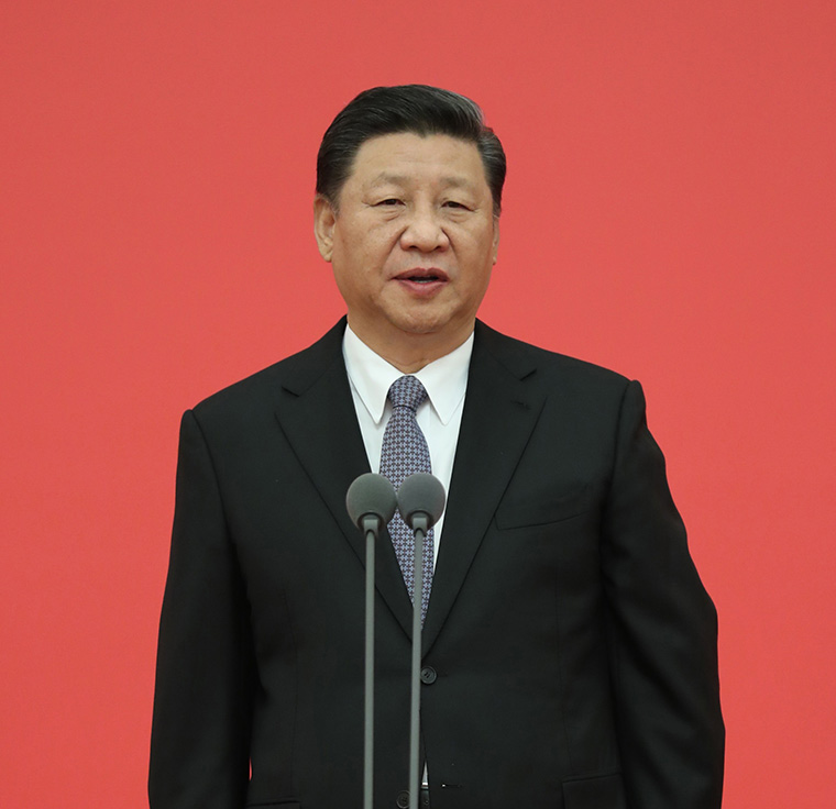 11月9日,国家综合性消防救援队伍授旗仪式在人民大会堂举行。中共中央总书记、国家主席、中央军委主席习近平向国家综合性消防救援队伍授旗并致训词。这是习近平致训词。新华社记者 鞠鹏 摄