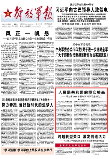 “人民是共和国的坚实根基,人民是我们执政的最大底气”,习主席在新年贺词中,高度赞扬人民作出的贡献,彰显出鲜明的人民立场,昭示着人民至上的永恒初心,体现了坚持以人民为中心的发展思想,为我们抓好新年度工作指明了出发点和落脚点。请关注今天的解放军报评论员文章——