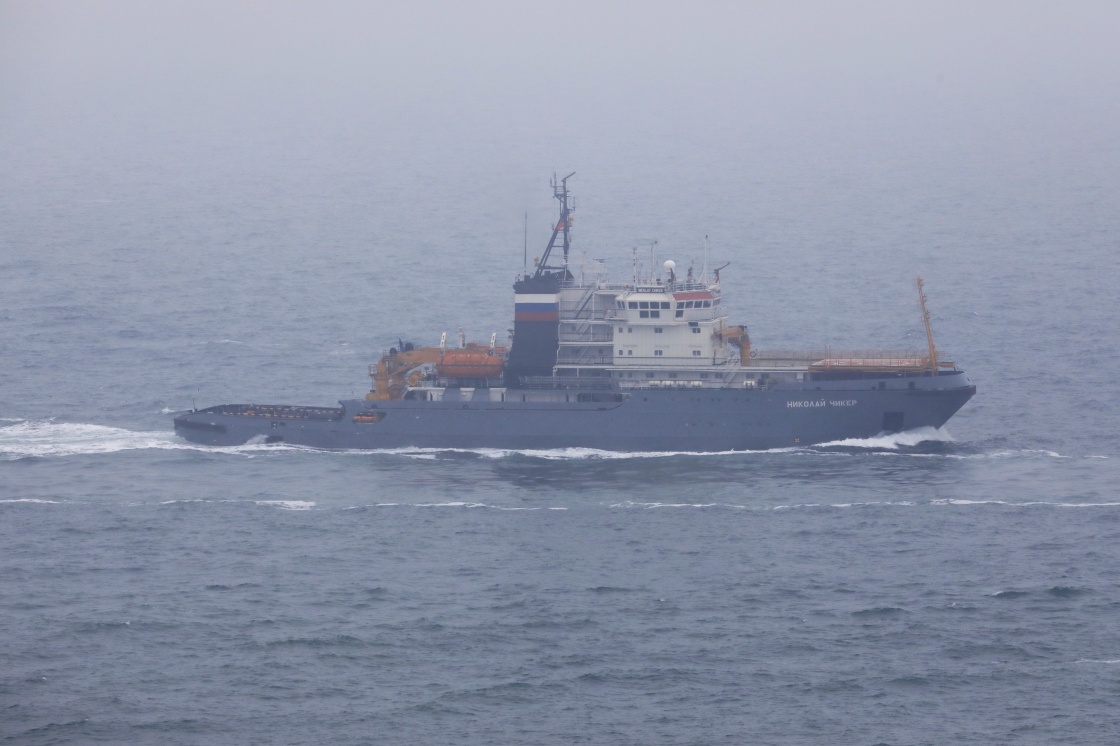 这是4月23日拍摄的俄罗斯“尼古拉·奇克尔”号救生拖船。新华社记者 琚振华 摄