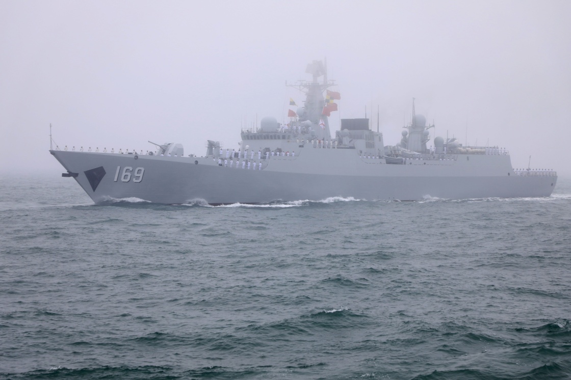 这是4月23日拍摄的“武汉”号导弹驱逐舰。新华社记者 黎云 摄