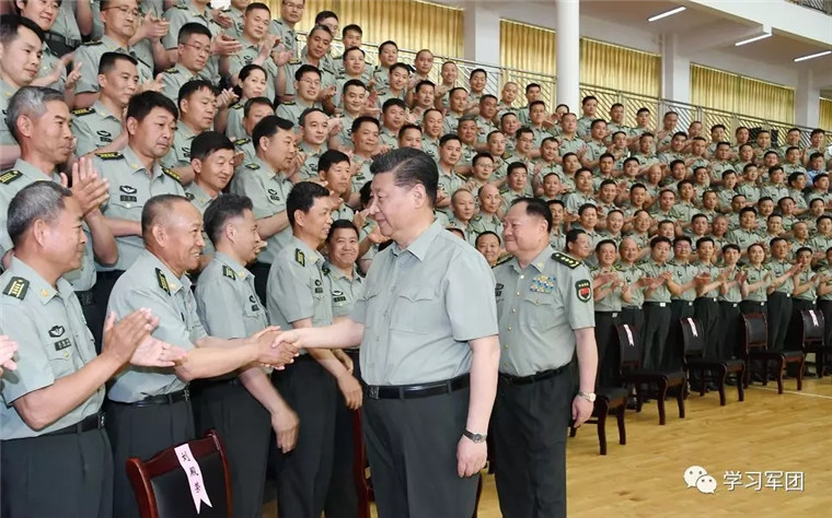 5月21日,中共中央总书记、国家主席、中央军委主席习近平到陆军步兵学院视察。这是习近平亲切接见驻江西部队副师职以上领导干部和建制团级单位主官、陆军步兵学院本部正团职以上干部和石家庄校区主官、专家教授代表。解放军报记者 冯凯旋 摄