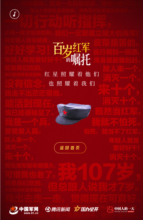 今年是新中国成立70周年,红军长征出发85周年。为大力弘扬伟大的长征精神,追寻革命先辈足迹,中国军网联合腾讯新闻推出《百岁红军的嘱托》大型系列报道,以全新的视角再现历史,找寻红色印记,传承红色血脉。