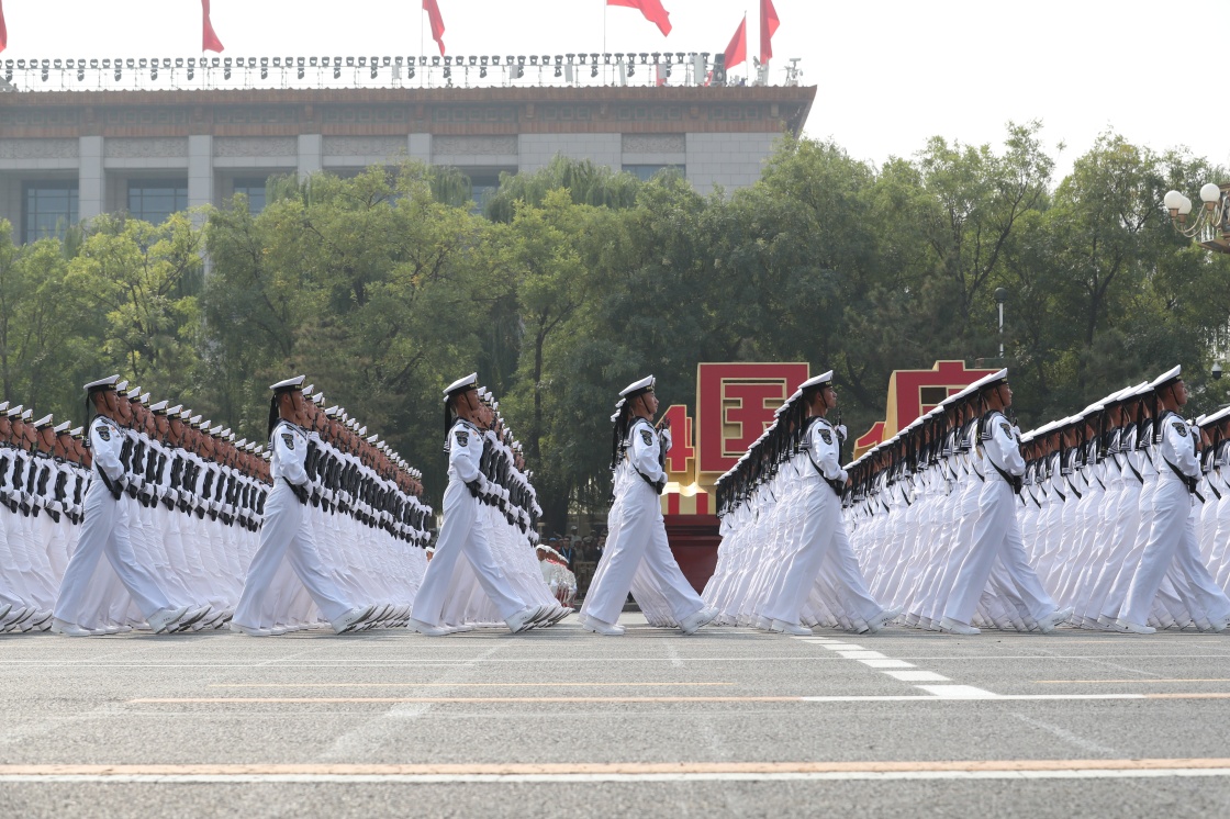 10月1日上午,庆祝中华人民共和国成立70周年大会在北京天安门广场隆重举行。这是行进中的海军方队。