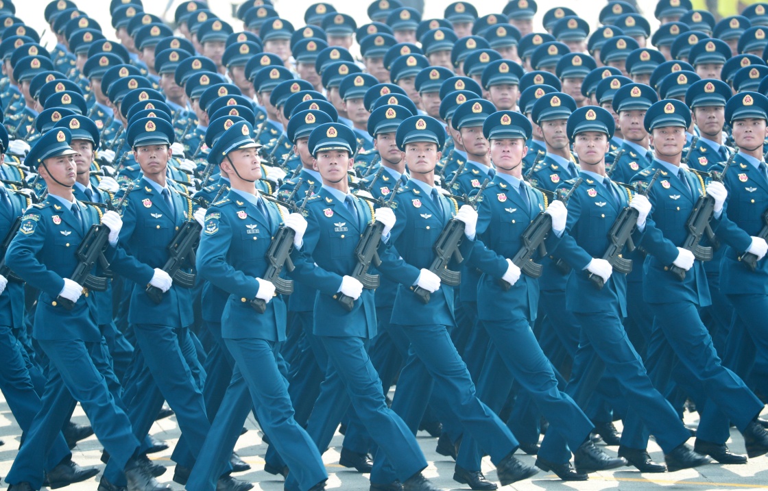 10月1日上午,庆祝中华人民共和国成立70周年大会在北京天安门广场隆重举行。这是行进中的空军方队。