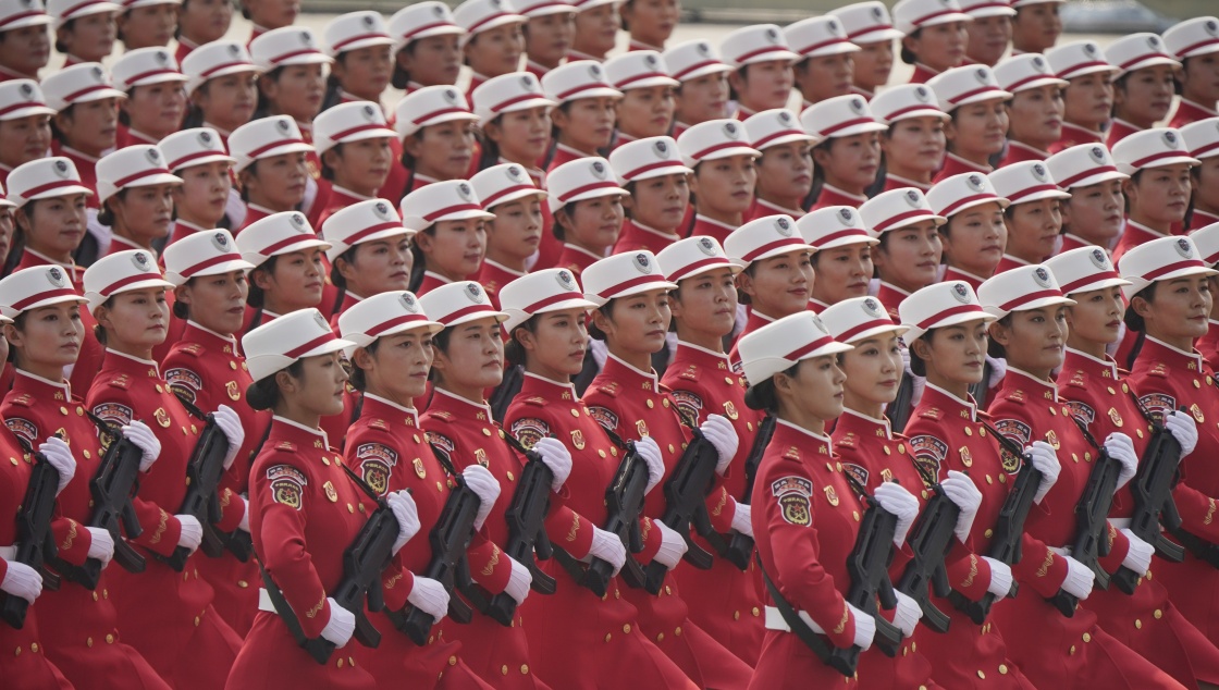 10月1日上午,庆祝中华人民共和国成立70周年大会在北京天安门广场隆重举行。这是行进中的民兵方队。