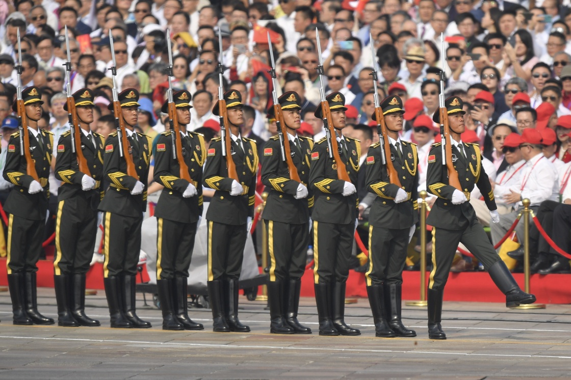10月1日上午,庆祝中华人民共和国成立70周年大会在北京天安门广场隆重举行。这是标兵就位。