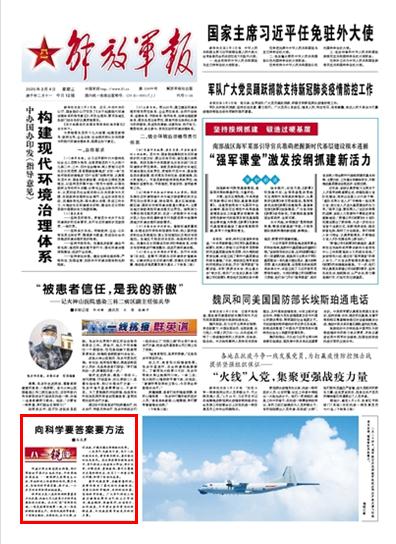 人民军队永葆忠于党、忠于人民的政治本色,素有敢打硬仗、善打胜仗的优良作风。在这场疫情防控阻击战中,军队科技工作者闻令即动、争分夺秒,冲锋在前、勇挑重担,集中力量展开应急科研攻关,攻克了一批重点难点问题,取得了阶段性成果。