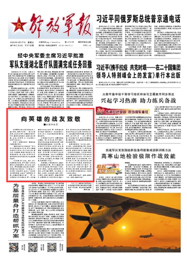没有警车开道,没有夹道欢送;入城不扰民,撤离不声张……经习主席批准,4000余名军队支援湖北医疗队队员,圆满完成任务后,陆续从武汉回撤。这动人的场景,又一次出现在人民军队的历史上。