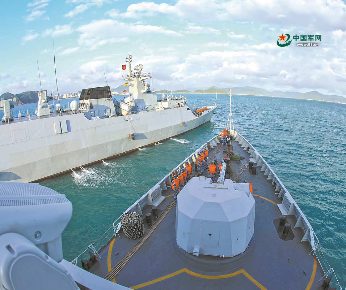 初冬时节,南海某海域波涛奔涌,战舰驰骋,南部战区海军某护卫舰支队舰艇全训合格考核正在进行。