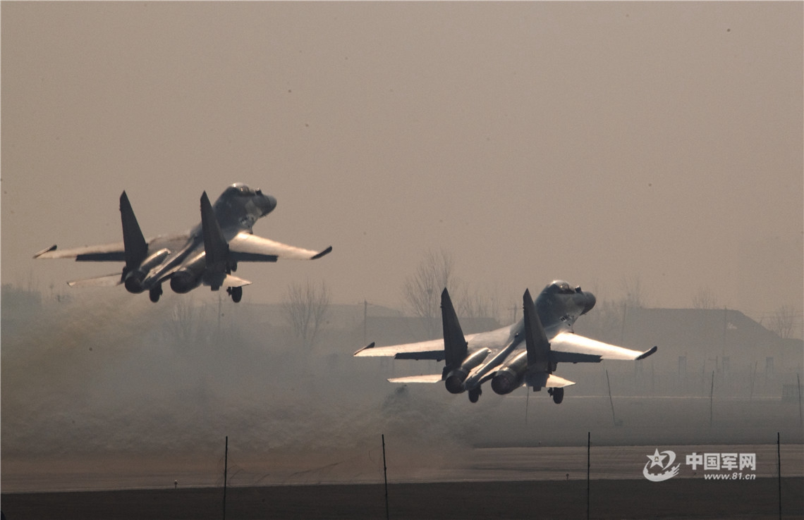 战机呼啸升空奔赴训练空域。徐晨桐 摄