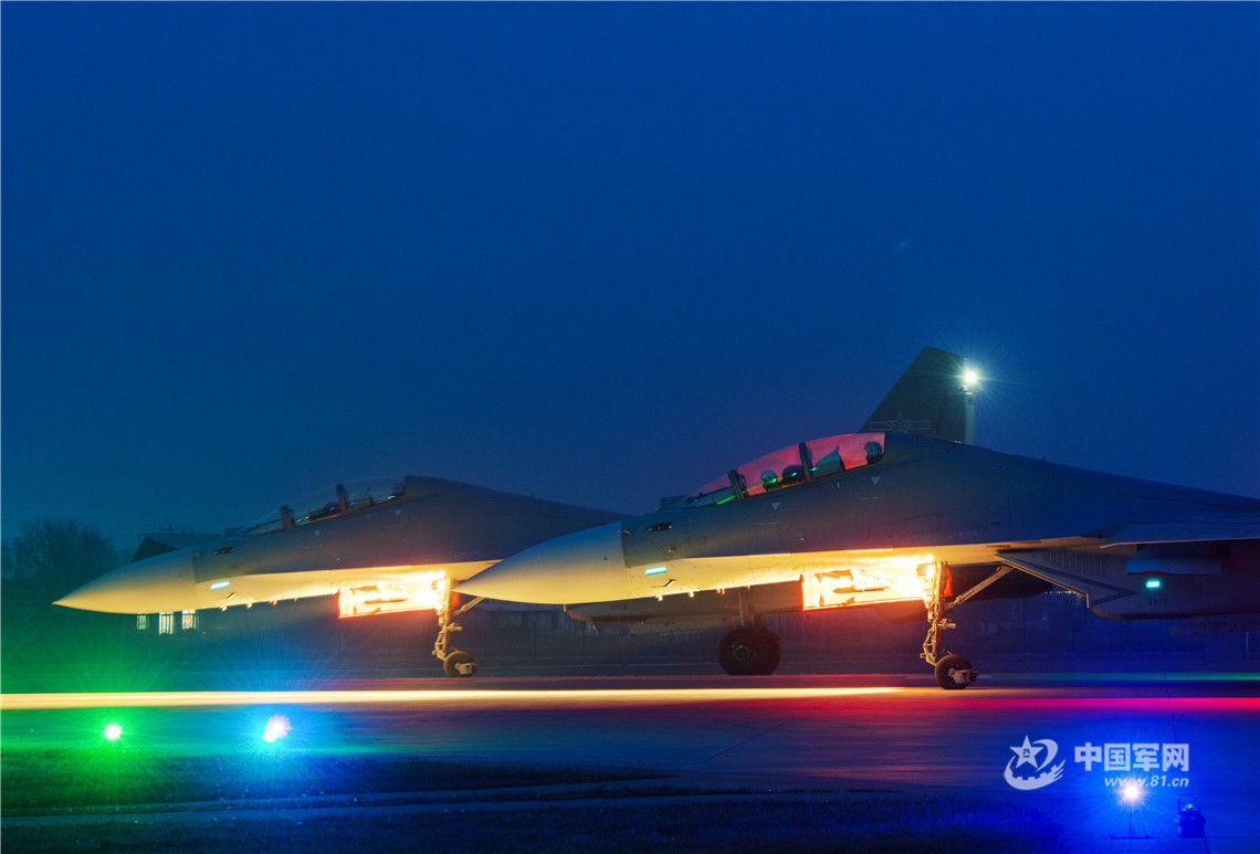 落日西沉,皓月当空。近日,华北某机场,空军航空兵某团数架战机喷吐火舌刺破夜幕,奔赴多个空域展开多课目夜间飞行训练。