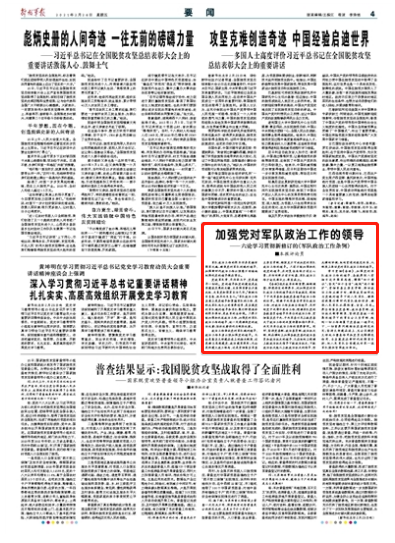 军队政治工作的根本任务是铸牢强军之魂、确保党对军队的绝对领导,加强新时代政治工作必须毫不动摇地把强化党的领导摆在首位。