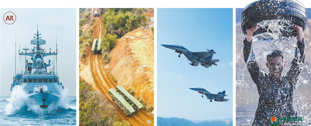 图①:战舰蹈海。周道先 摄;图②:野外机动。刘志勇 摄;图③:战机凌空。王毅 摄;图④:强化体能。刘自华 摄