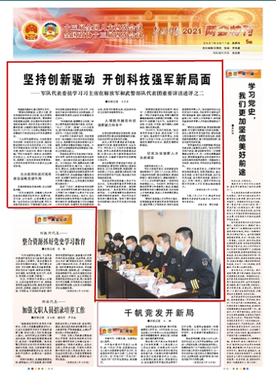 “当今时代,科技引领发展。”来自海军的李超代表说,顺利实施“十四五”规划、推进新时代强军事业、实现建军100年奋斗目标,比过去任何时候都更加需要科学技术,都更加需要创新驱动。
