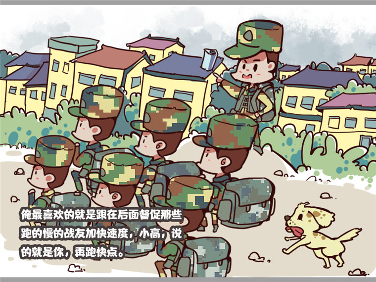 每天俺都会和俺的战友们一起锻炼,许多新同志都跑不过我,包括小高。