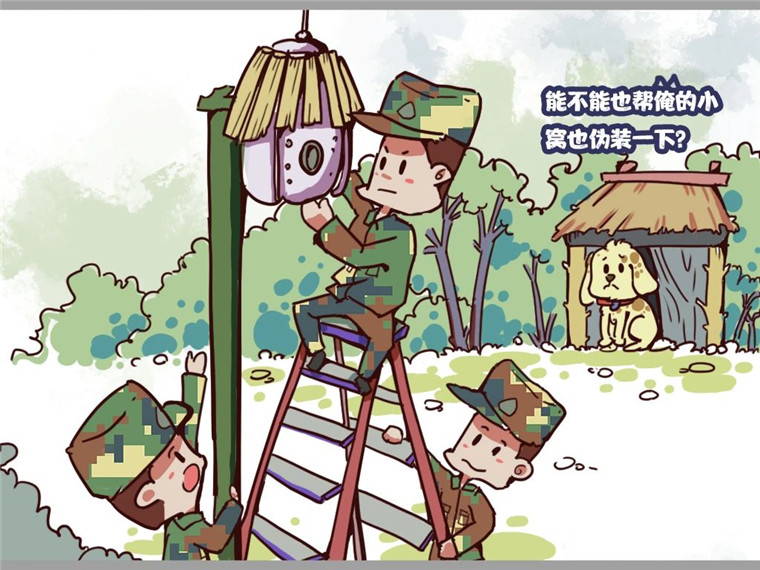 平时战友们也会对一些装备进行伪装处理,防止被坏人发现。不过俺恐高,每次都躲在老远地方,看着他们工作的样子,真是替他们捏一把汗呀!