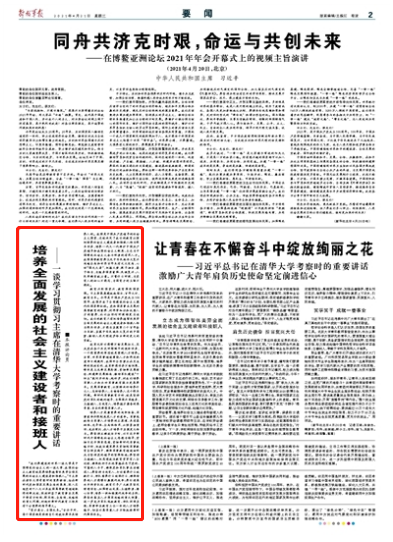 “我们要建设的世界一流大学是中国特色社会主义的一流大学,我国社会主义教育就是要培养德智体美劳全面发展的社会主义建设者和接班人。”习主席在清华大学考察时的重要讲话,站在新时代党和国家发展全局的高度,深入总结党的十八大以来我国高等教育领域取得的新成就,深刻回答了教育事业发展中带有方向性、根本性、全局性、战略性的重大问题,对做好新时代教育工作具有十分重要的指导意义。
