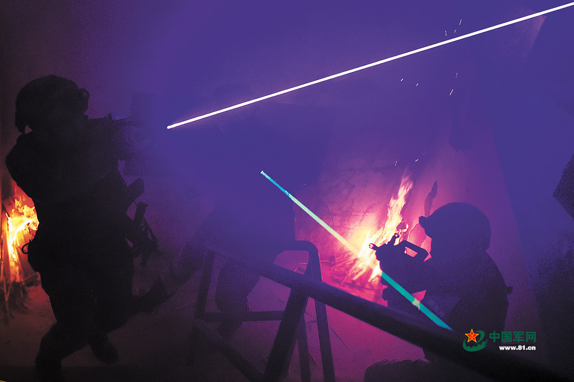 在皖北涂山一带,“暴恐分子”挟持“人质”躲藏在一处废弃厂房内,妄图负隅顽抗。千钧一发之际,武警蚌埠支队特战中队一名队员飞身索降,破窗而入。趁“暴恐分子”惊魂未定之机,正面进攻官兵快速突入房间,以迅雷之势制伏“暴恐分子”。