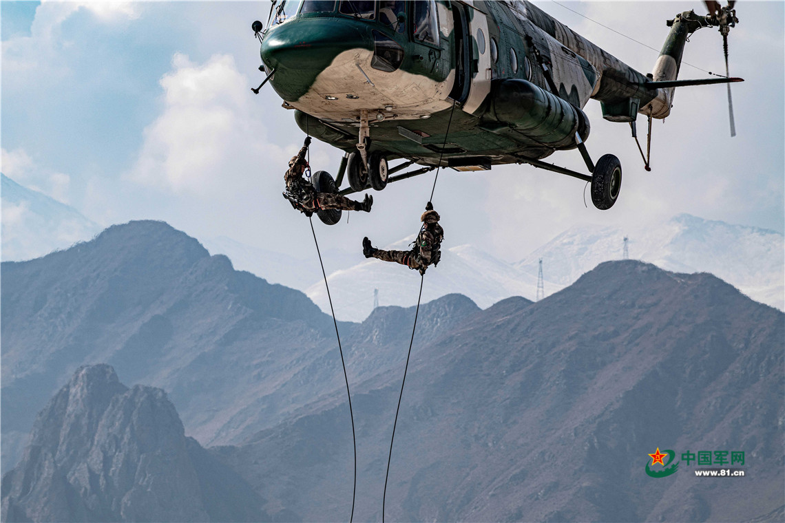 近日,西藏军区某旅女兵分队10余名高原特战女兵在高原训练场独立完成自己的首次直升机武装机降。这次实装训练中,女兵分队全部按照实战化要求进行训练,采取双人编组,独立作业的方式。一声令下,两名女兵从机舱顺绳而下,顺利落地后,女兵们加紧拆绳,向目标地域突击。