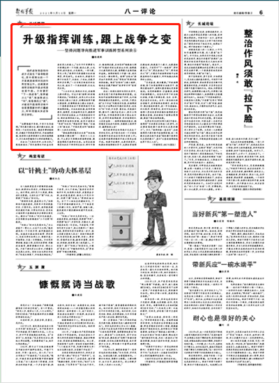 毛泽东同志在《论持久战》中指出,指挥员“不但要有压倒敌人的勇气,而且要有驾驭整个战争变化发展的能力”。今天,“战争的脸一直在变”,各级指挥员只要不断升级指挥训练,就一定能在未来实战中具备“驾驭整个战争变化发展的能力”,进而“以高效指挥担起统率千军之大任”。