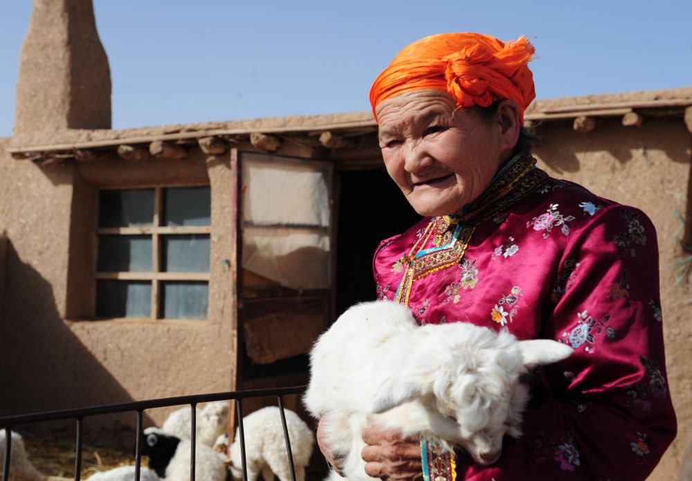 △2009年2月13日,都贵玛在牧区的家里照看小羊羔。新华社记者 任军川 摄