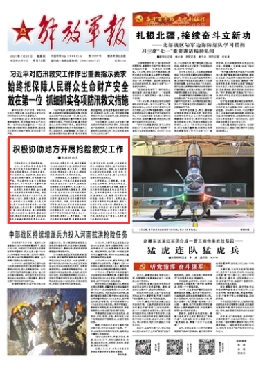 近日,河南等地持续遭遇强降雨,郑州等城市发生严重内涝,一些河流出现超警水位,个别水库溃坝,部分铁路停运、航班取消,造成重大人员伤亡和财产损失,防汛形势十分严峻。习主席对防汛救灾工作作出重要指示,号令解放军和武警部队要积极协助地方开展抢险救灾工作。