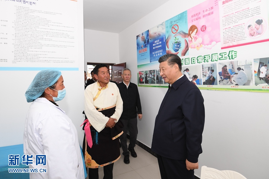 7月21日至23日,中共中央总书记、国家主席、中央军委主席习近平来到西藏,祝贺西藏和平解放70周年,看望慰问西藏各族干部群众。这是21日下午,习近平在林芝市巴宜区林芝镇嘎拉村卫生室详细了解有关情况。 新华社记者 申宏 摄
