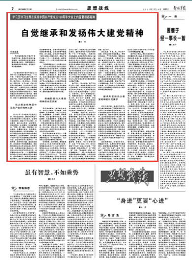 习主席在庆祝中国共产党成立100周年大会上的重要讲话中指出:“一百年前,中国共产党的先驱们创建了中国共产党,形成了坚持真理、坚守理想,践行初心、担当使命,不怕牺牲、英勇斗争,对党忠诚、不负人民的伟大建党精神,这是中国共产党的精神之源。”这是我们党第一次概括提炼出“伟大建党精神”,对于我们深刻感悟党的革命精神的源头活水,准确把握党的革命精神的本质内涵,增强继承和发扬伟大建党精神的政治自觉,具有十分重要的理论和实践意义。