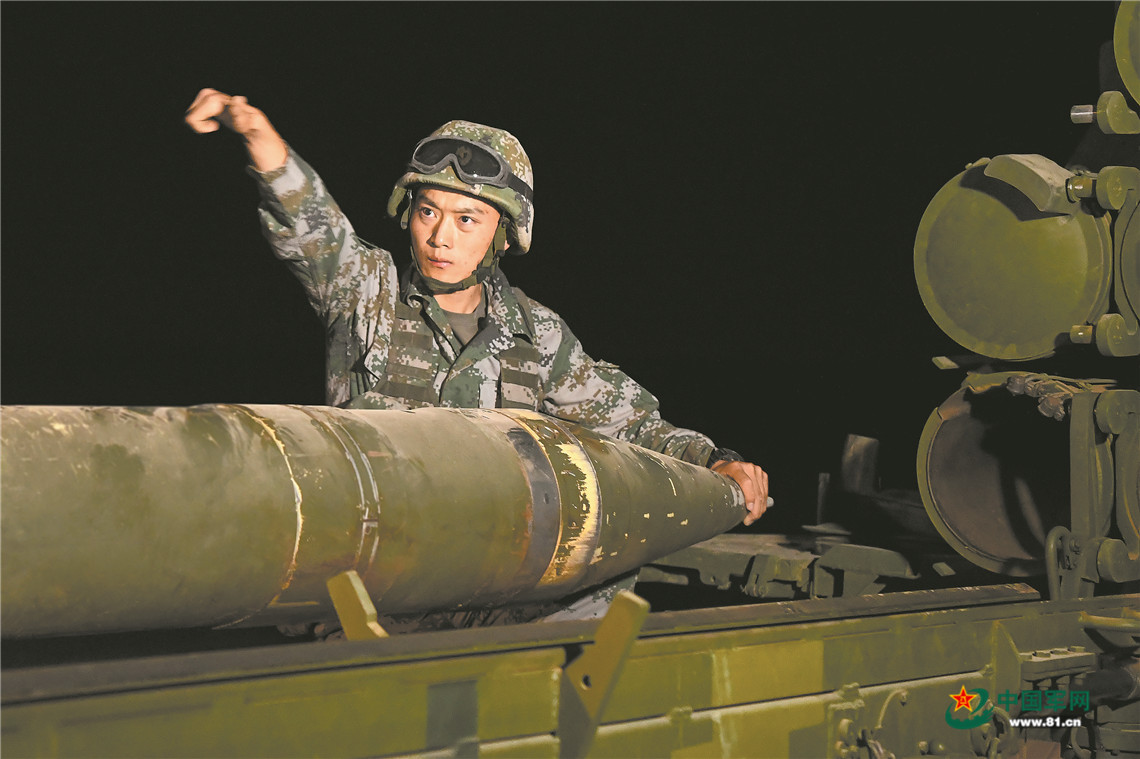夜间进行装填弹药训练。