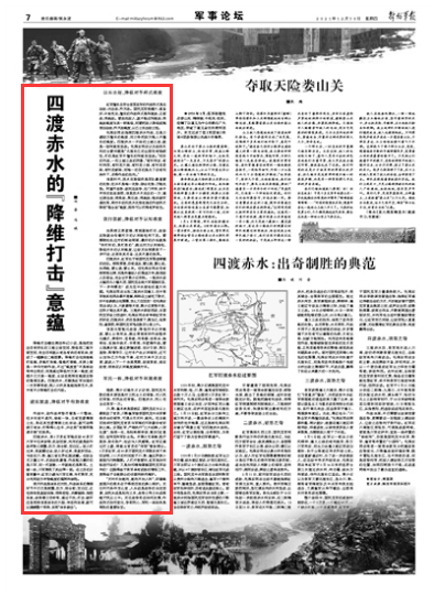 降维打击概念源自科幻小说,是指把攻击目标所处的三维立体空间,降低到二维平面空间,攻击目标就从有血有肉的有机体,变成了一幅静态二维图景。降维打击包括高维打低维、多维打单维、强维打弱维,本质上看是一种非对称作战,不过“维度差”不是被动等待出现的,而是通过降低对方某一维度,或提升己方某一维度,主动实现特定维度态势的强弱互易。四渡赤水,无疑是红军创造的一次军事奇迹,深入分析其高超指挥艺术,其中有不少降维打击的内容。