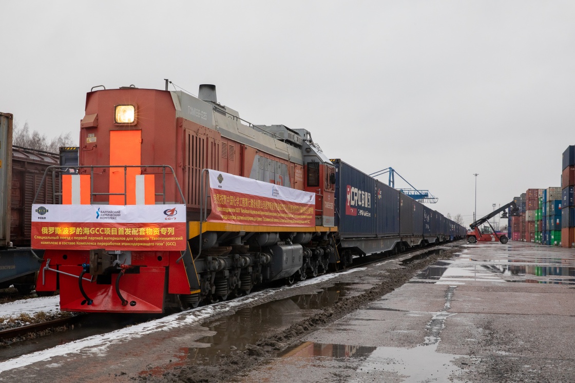 2021年3月15日,由中国成都首发至俄罗斯圣彼得堡市的中欧班列抵达俄罗斯圣彼得堡舒沙雷火车站。新华社发(俄罗斯铁路公司十月铁路局供图)