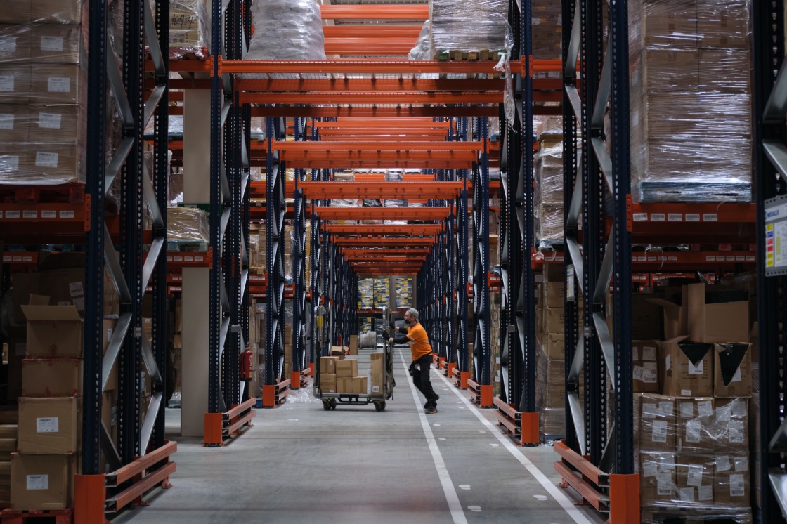 2021年11月11日,工作人员在西班牙瓜达拉哈拉市的菜鸟网络所设立的海外仓中工作。新华社记者 孟鼎博 摄