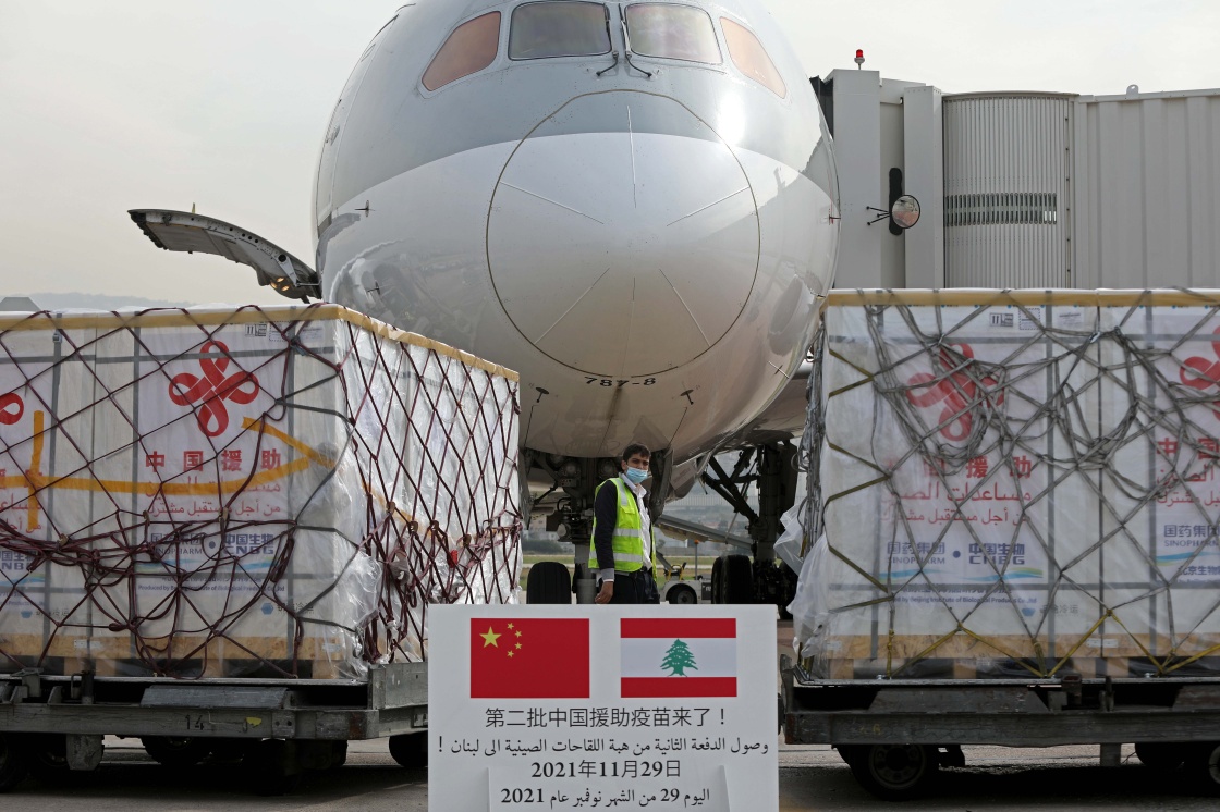2021年11月29日,中国援助黎巴嫩第二批新冠疫苗运抵贝鲁特拉菲克·哈里里国际机场。新华社发(比拉尔·贾维希 摄)