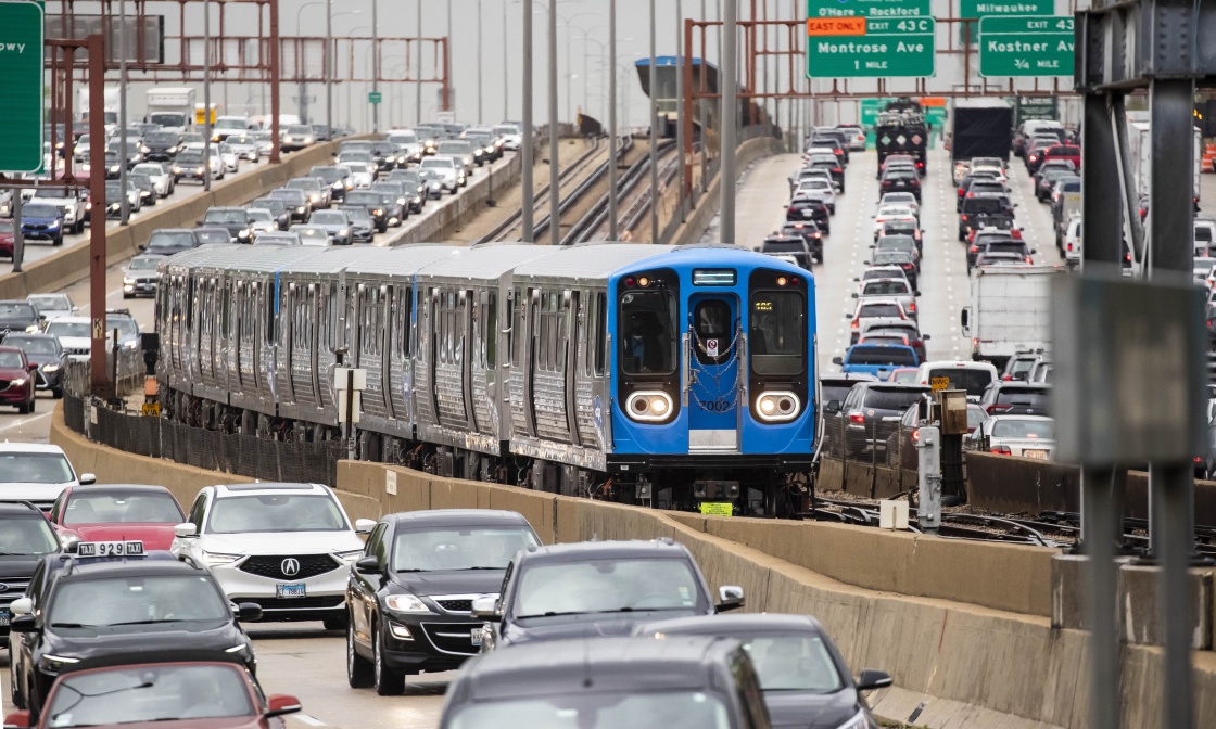 2021年5月6日,挂有7000系列车厢的地铁列车在美国芝加哥载客试运行。7000系列地铁车厢由中国中车青岛四方机车车辆股份有限公司(中车四方)在美国制造组装。新华社发(乔尔·莱纳 摄)