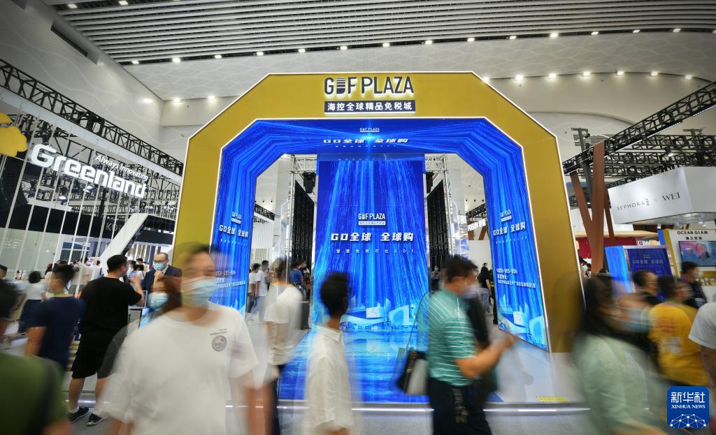 这是在海口举行的首届中国国际消费品博览会(消博会)上的海控全球精品免税城展台(2021年5月9日摄)。新华社记者 蒲晓旭 摄